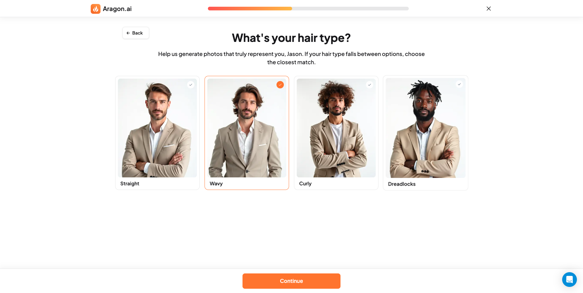 Hair length selection. Helps Aragon match your look and silhouette.