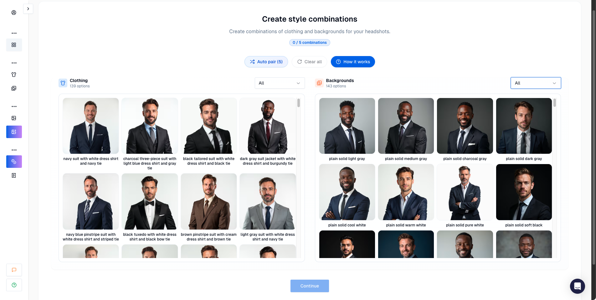 Style pairs. Combine outfits and backgrounds to generate multiple looks.
